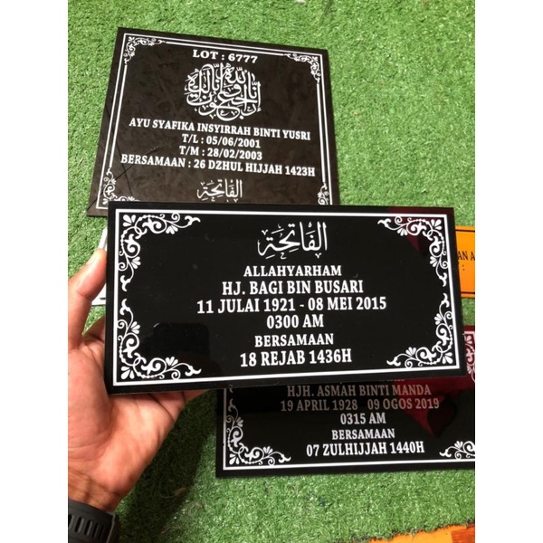Ready Stock Nama Batu Nisan Plate Kubur Lelaki Dan Perempuan Acrylic Tebal 2 5mm Saiz Besar Shopee Malaysia
